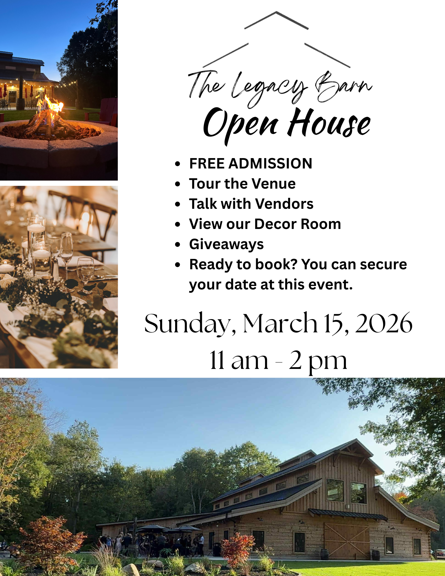 The Legacy Barn is not only incredibly flexible and competitively priced, but so much is included in our packages! Come check us out!!